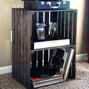 Our homemade, handcrafted crates come in three different sizes to accommodate all sizes of vinyl.