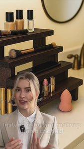 Its tiered step design allows you to easily display and access your favorite items while adding a warm decorative touch to your space. Whether used as a makeup organizer, bathroom counter display, or even for small collectibles, this wooden stand blends function with farmhouse style.