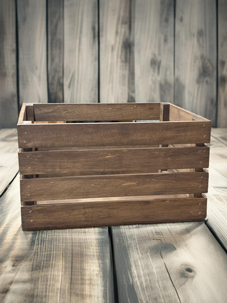 Enhance your home with this handcrafted medium brown stained wooden crate, perfect for storage, organization, and decorative use. Featuring a classic rustic finish, this durable wooden crate blends seamlessly with farmhouse, vintage, and modern decor.