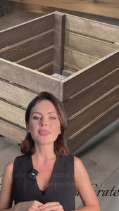 Enhance your home with this handcrafted medium brown stained wooden crate, perfect for storage, organization, and decorative use. Featuring a classic rustic finish, this durable wooden crate blends seamlessly with farmhouse, vintage, and modern decor.