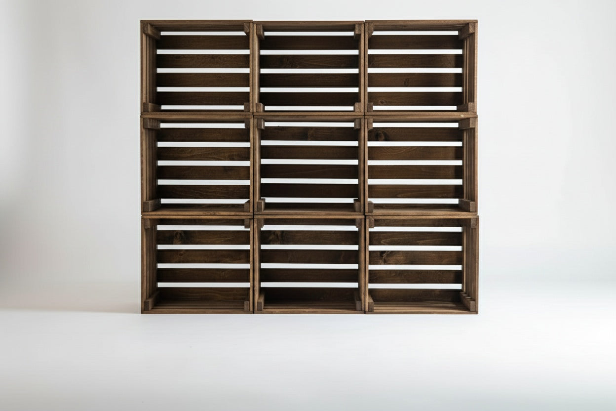 Add rustic farmhouse charm and versatile storage to any space with this 9-crate wooden shelf unit. Handcrafted from solid wood, this piece combines style and function, making it perfect for dorm rooms, living rooms, offices, or entryways.