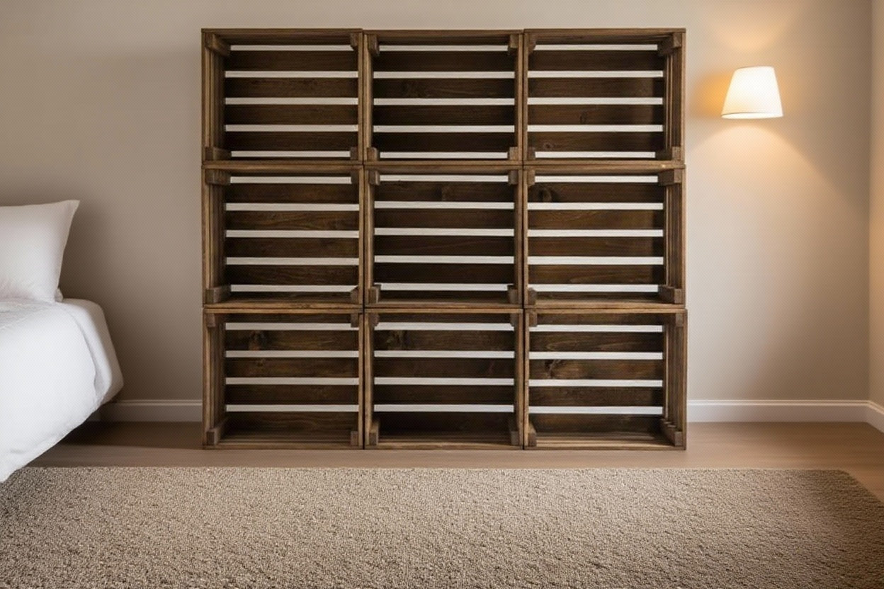 Rustic Wooden 9-Crate Storage Shelf | Farmhouse Organizer & Display