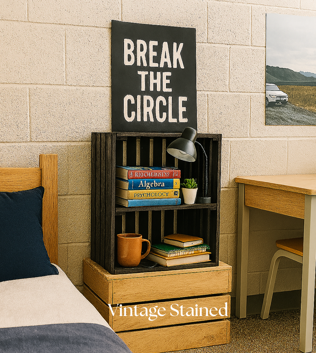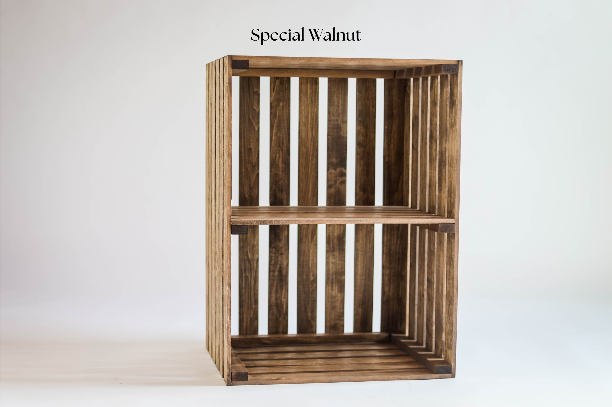 Rustic Wooden Crate Stand | Dark Stained 2-Tier Storage Shelf for Dorm Rooms & Small Spaces