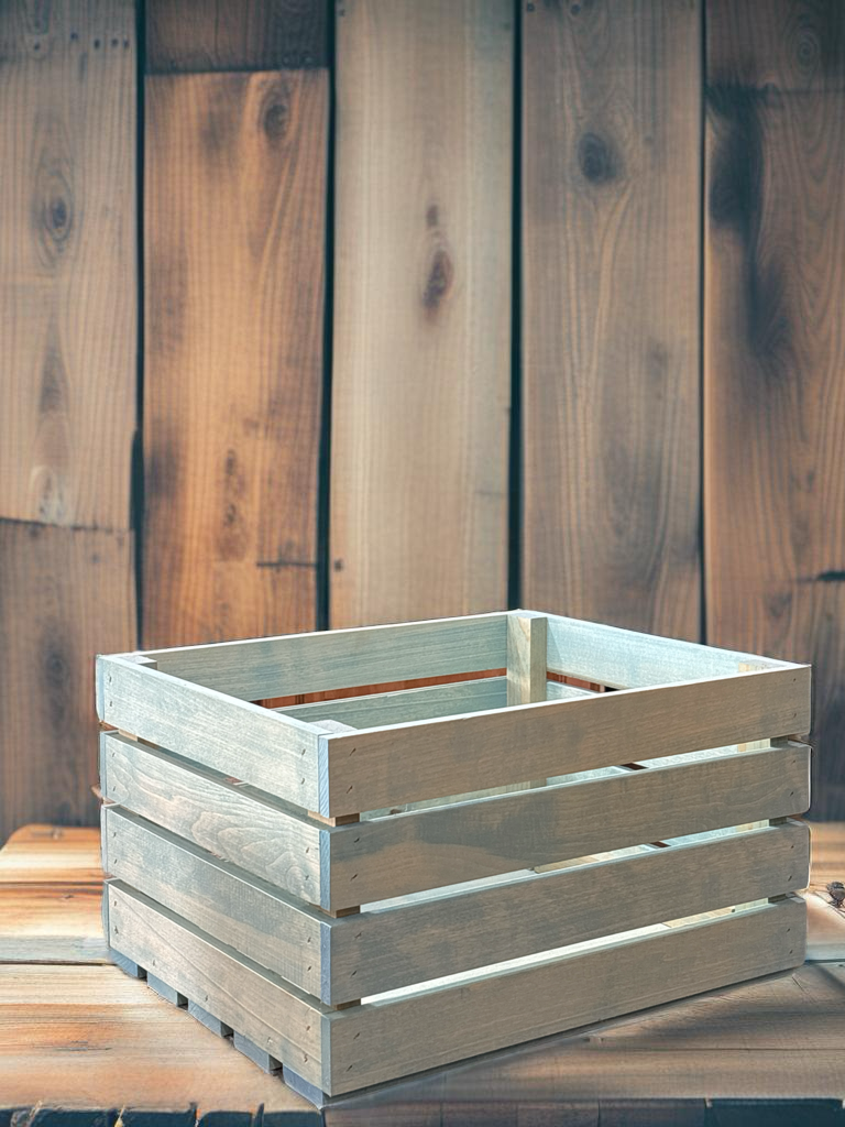 Handcrafted from solid wood and finished in a soft vintage blue stain, this crate blends farmhouse style with everyday functionality. Its slatted sides and sturdy build make it perfect for organizing, displaying, or decorating in any room of the house.